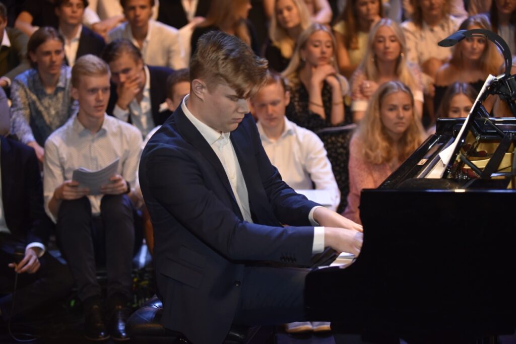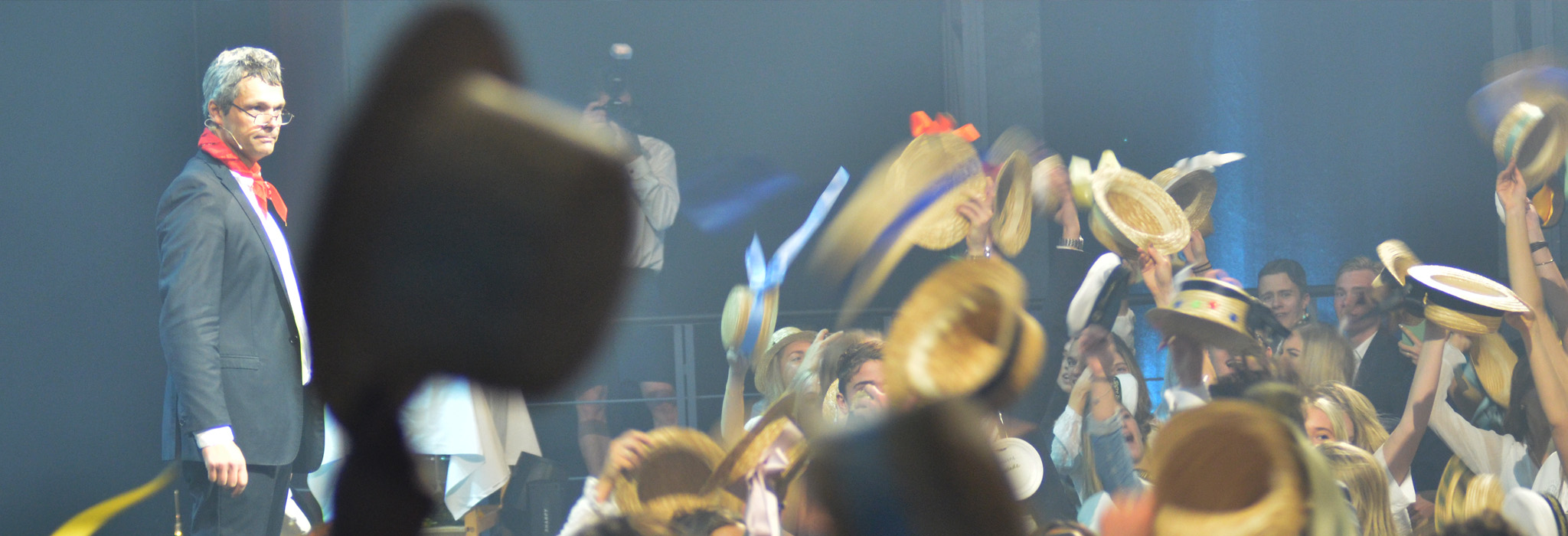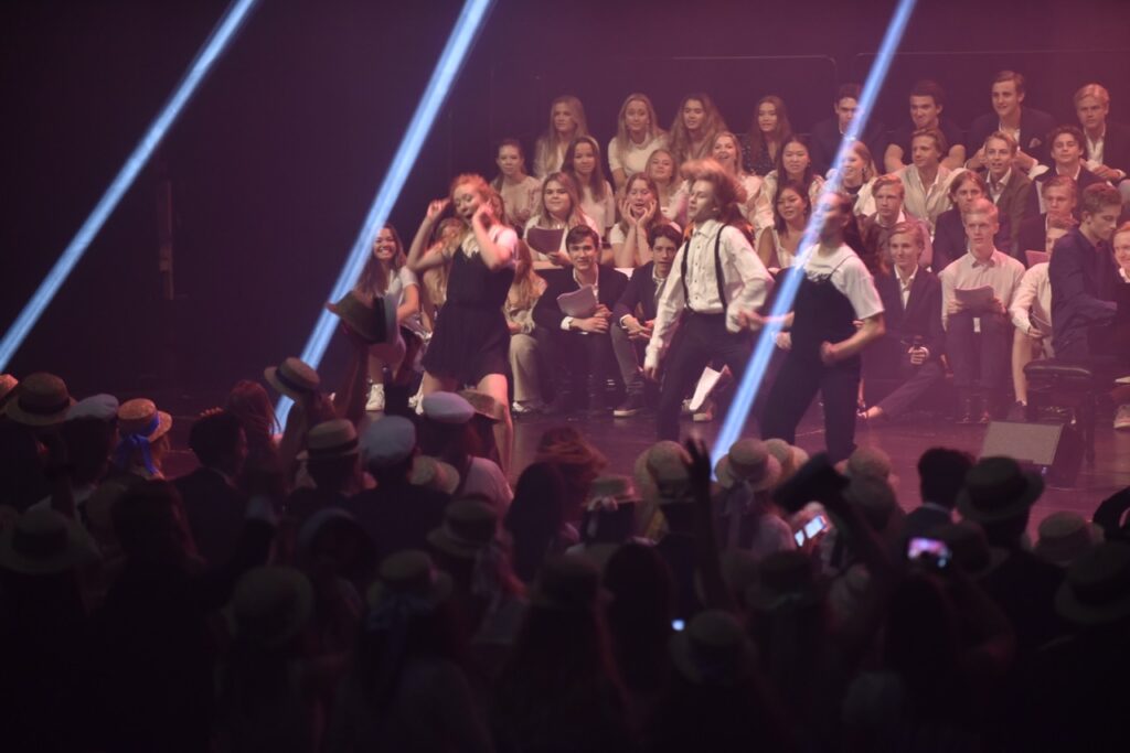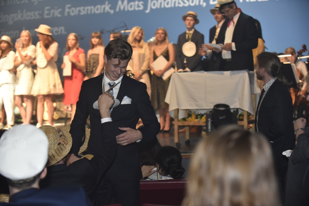 Våravslutning på Operan, med musikframträdande, tal och glada studenter.