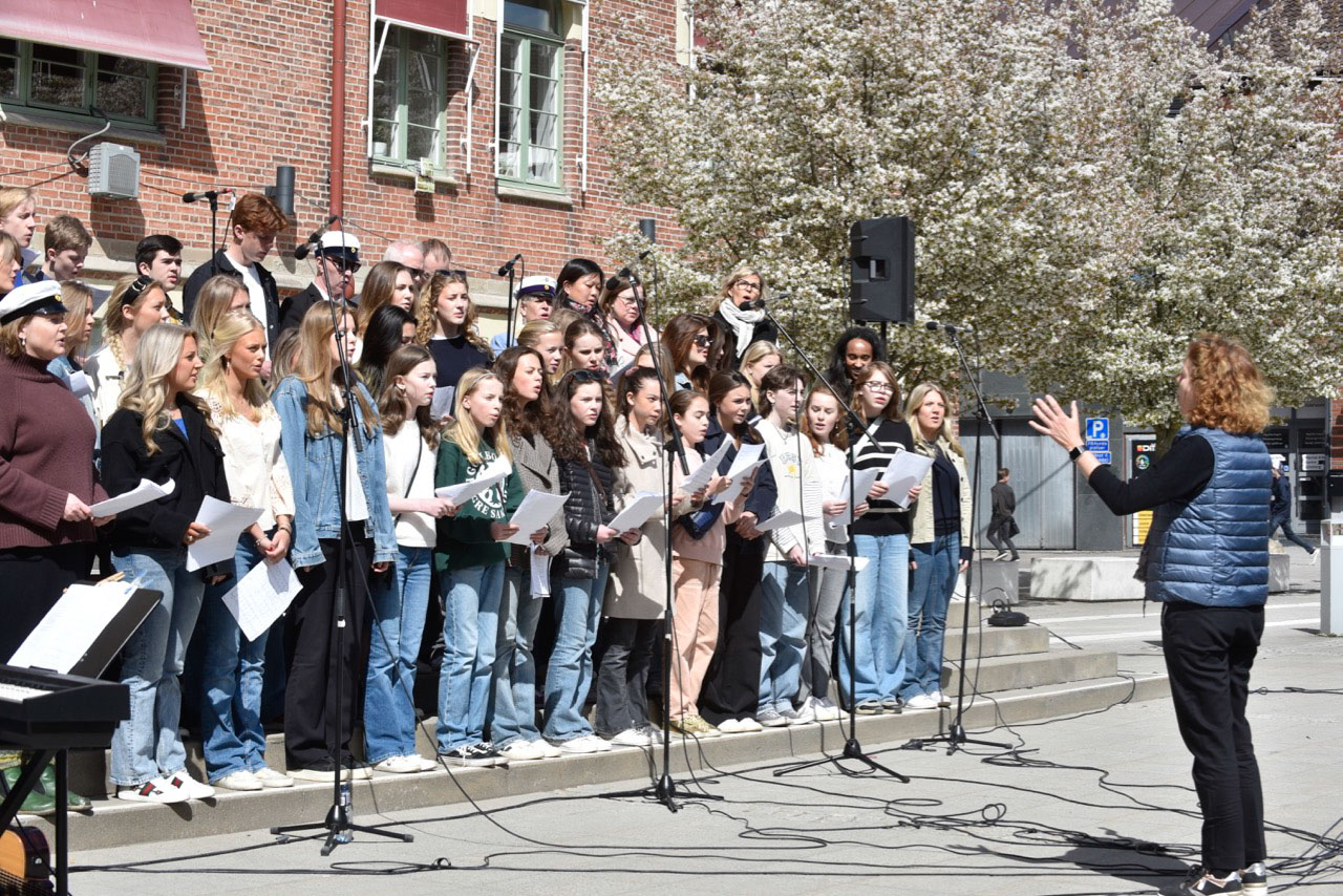 Valborgsmässoafton med vårsång på skolgården. Fina tal och mäktig körsång….och varmkorv!