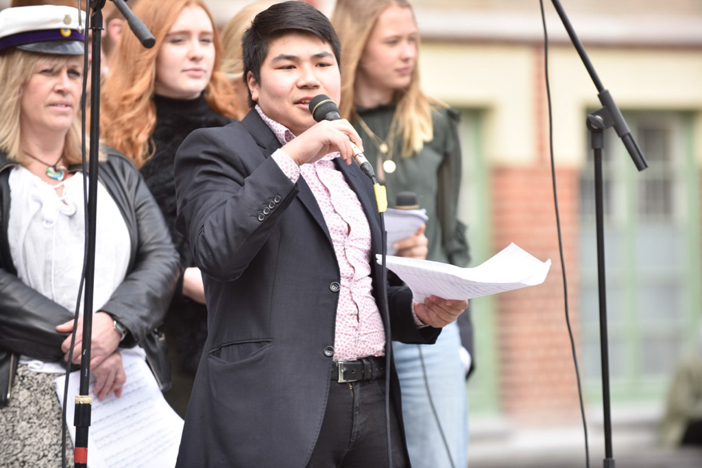 Samskolans vårsång, i strålande solsken.